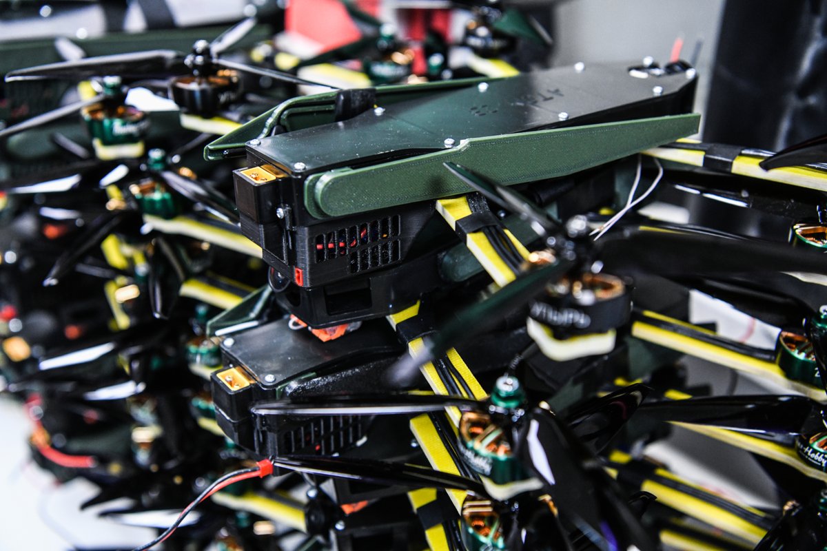 Он также напомнил, что дрон состоит почти целиком из собственных запчастей и работает на переменных частотах. По его словам, было выпущено уже более 3000 и производство будет только масштабироваться.