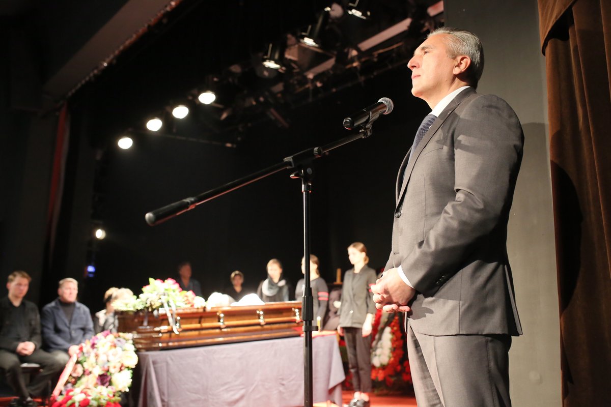 Губернатор Тюменской области Александр Моор приехал на похороны руководителя театра «Ангажемент» Леонида Окунева. Глава региона произнес прощальную речь, в которой упомянул личные и профессиональные качества актера. Об этом с места событий передает корреспондент URA.RU.