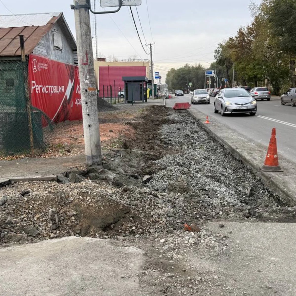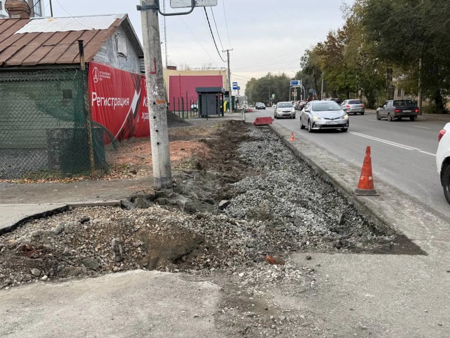 Остановку на улице Барбюса в Челябинске сохранят при расширении тротуара. Фото