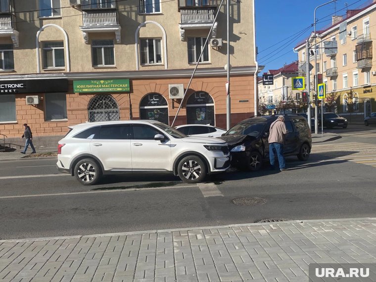 В Кургане на перекресте улиц Ленина и Карла Маркса произошло массовое ДТП. Об этом сообщает читатель URA.RU.