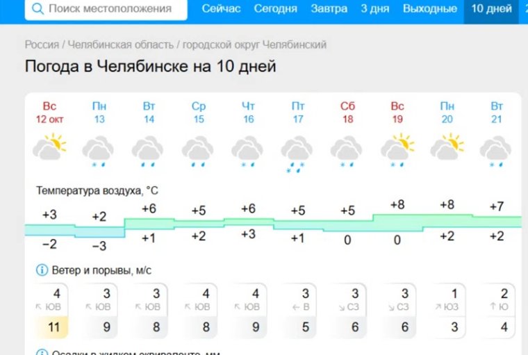 Прогноз погоды в Челябинске по дням: