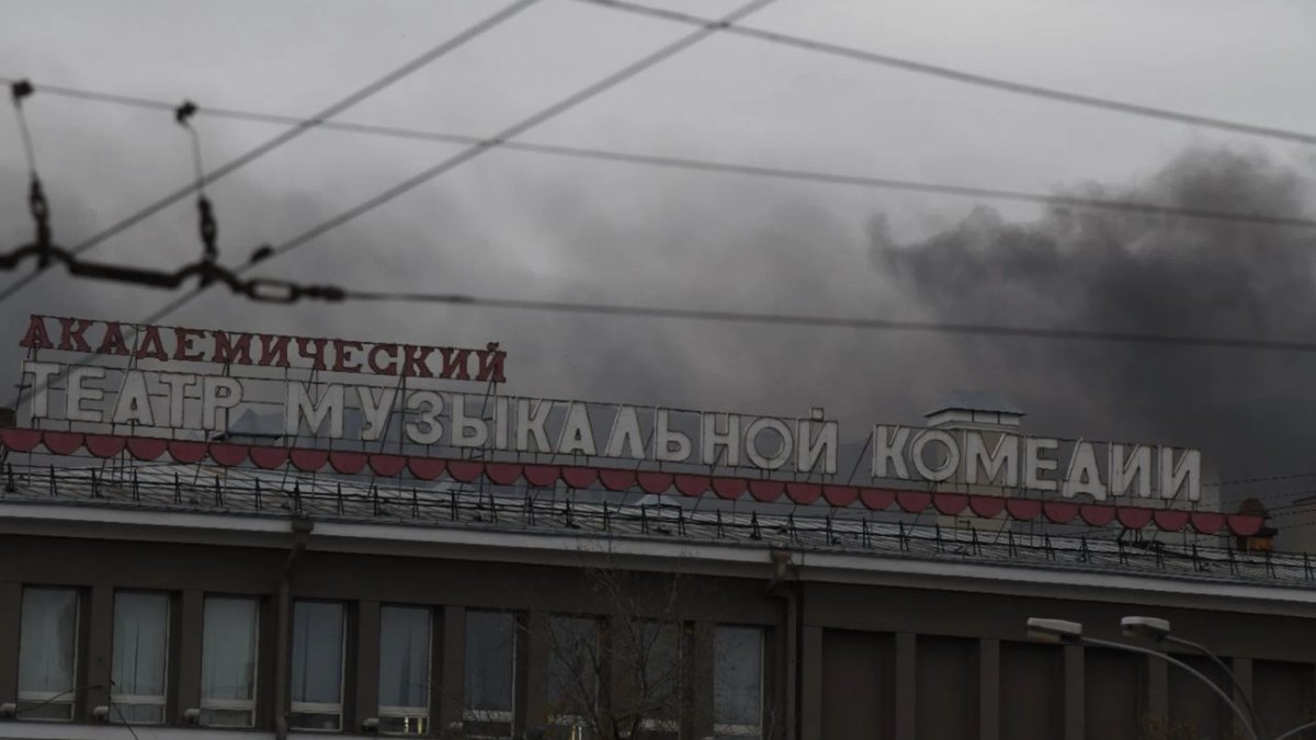 Дым поднялся от пожара, очагом которого стал мусорный бак возле театра. Площадь возгорания составила 10 квадратных метров. Огонь оперативно потушили прибывшие сотрудники МЧС.
