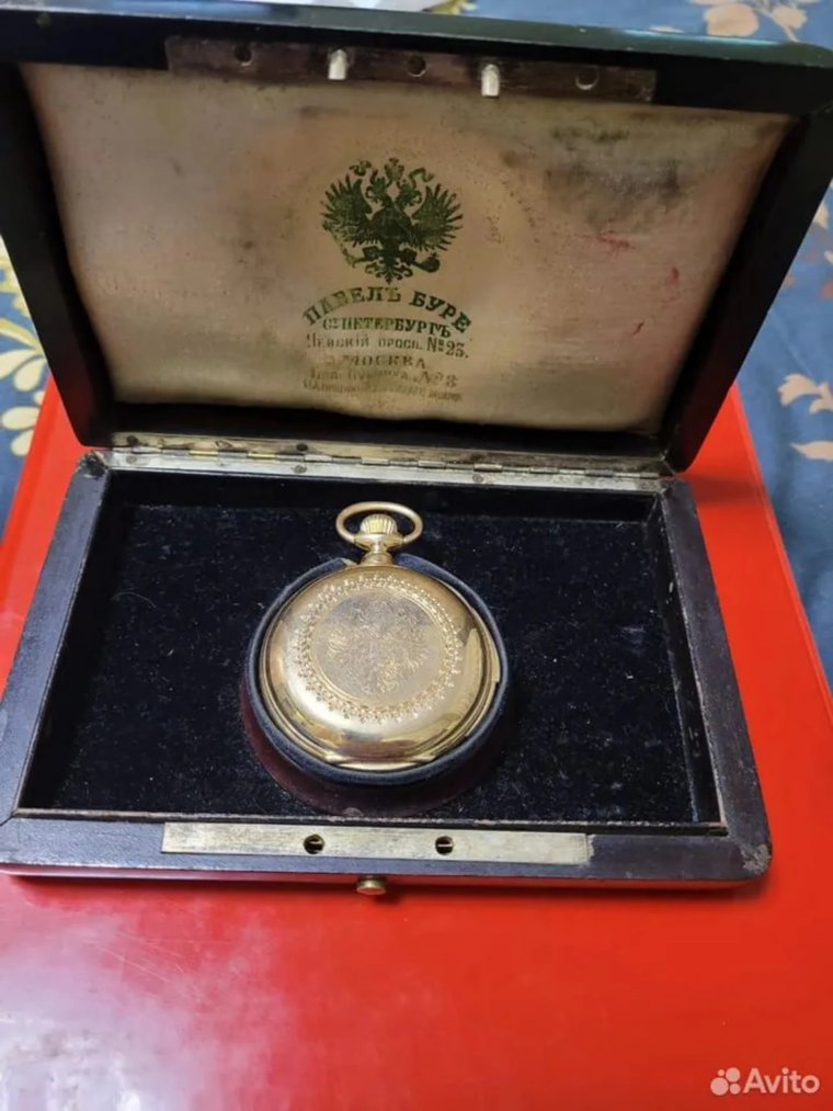 «Продам мужские карманные золотые трехкрышечные часы с минутным репетиром, Павел Буре 19-ого века, оригинал, золото 56-ая проба, 1889 года. Все подлинное», — говорится в объявлении на сайте Avito