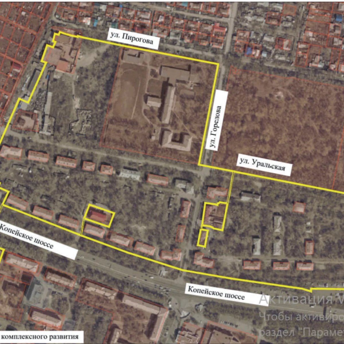 «Принять решение о комплексном развитии территории жилой застройки в границах Копейского шоссе, улиц Туркменской, Уральской, Горелова, Пирогова и Обуховской с учетом многоквартирного дома по Копейскому шоссе, 15 общей площадью 21,02 га. Осуществляется по инициативе органа местного самоуправления посредством проведения аукциона», — говорится в распоряжении.